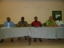 Le présidium du CRP. De gauche à droite, le Directeur régional de l’eau et de l’assainissement ; le Président du conseil régional ; le Secrétaire général de la région ; le Chargé de la coopération autrichienne ; le Représentant de l’ONEA.