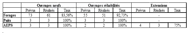 • 3 puits ont été réhabilités sur les 3 initialement programmés soit un taux d’exécution de 100% ;